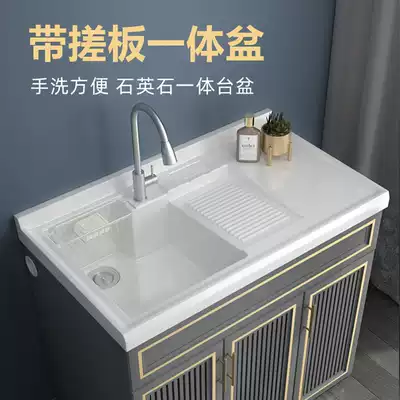 Space alloy aluminum washroom stone bathroom cabinet combination stone countertop floor balcony cabinet with washboard customization