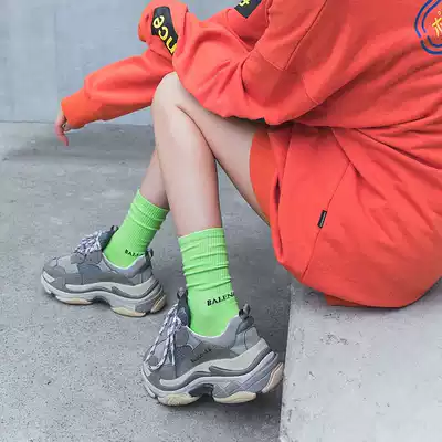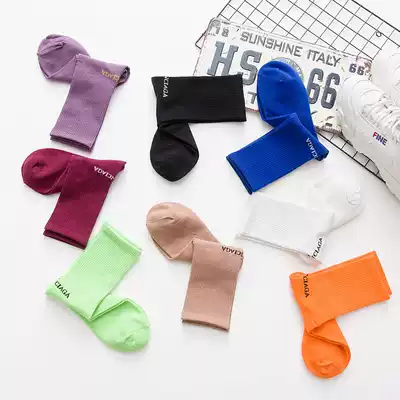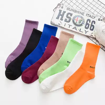 3 pairs of bubble socks women autumn and winter ins tide socks female middle tube Korean candy color letter stockings college style Japanese series