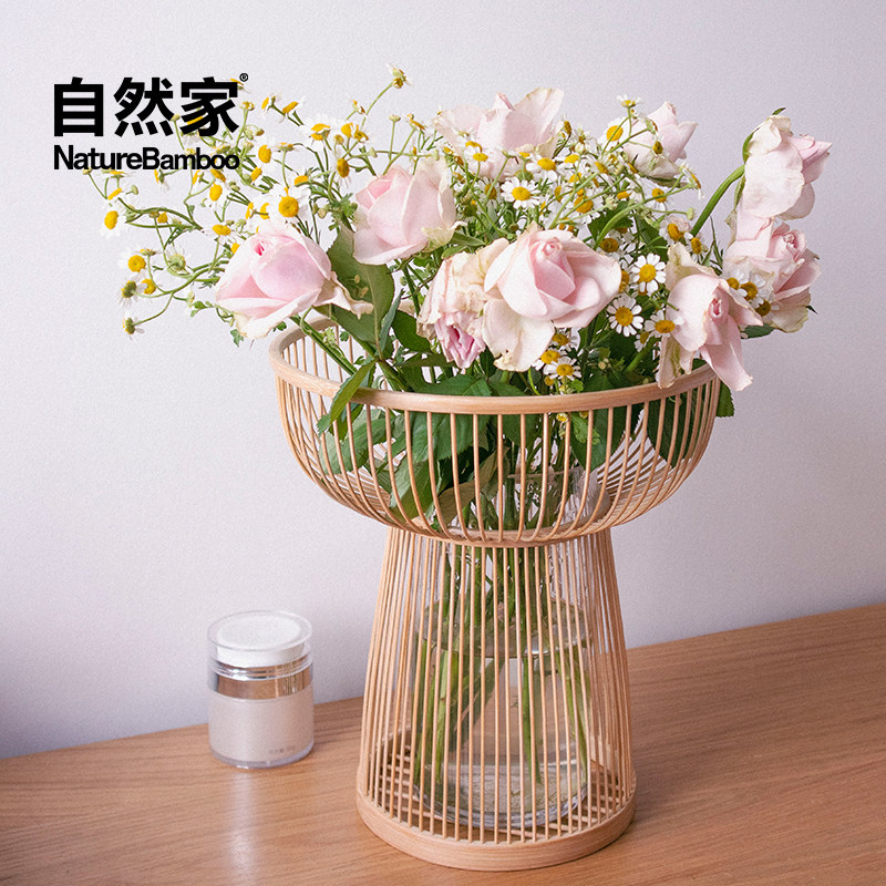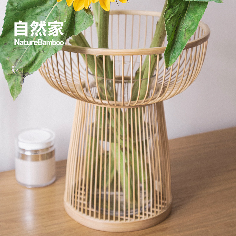 Nature Home One Flower Ware Natural material New Chinese Bamboo Flower Instrumental Zen family Decorative Living Room Dining Room Dining Room