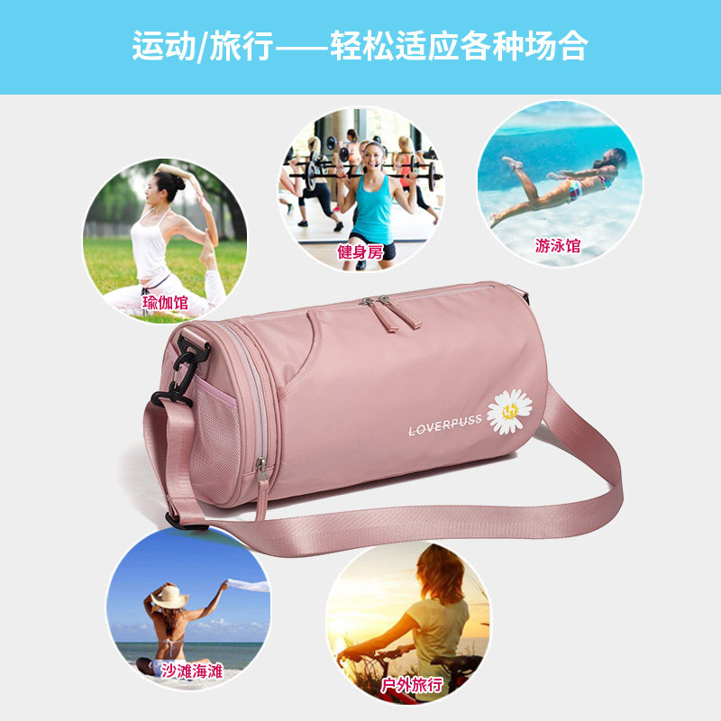 Net red fitness bag Female small cylinder shoulder crossbody bucket bag Male small daisy training swimming dry and wet separation sports bag