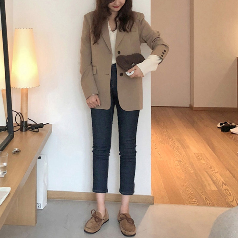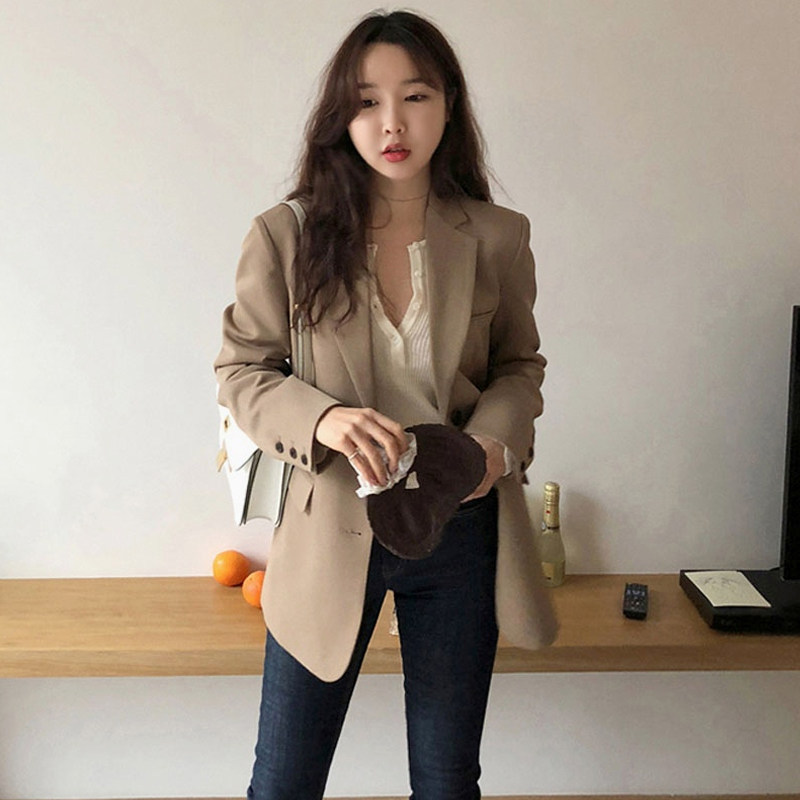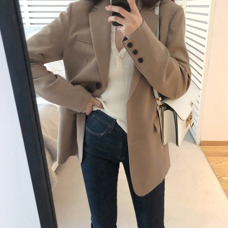 Suit Jacket Women's Ins Chains Short Spring and Autumn Han Edition Loose Yinglun Wind Design Sense Casual Little Submini Western Suit
