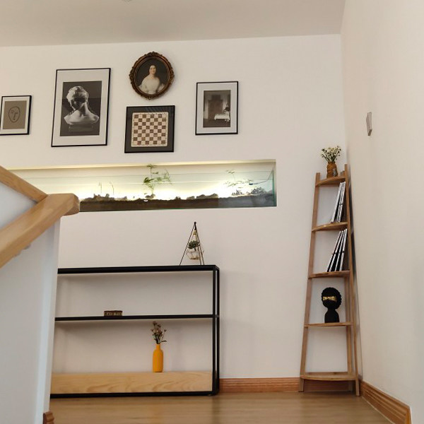 Nordic sofa behind the long shelf, the gap is against the wall, the narrow porch, the bedside living room, the iron storage layer shelf