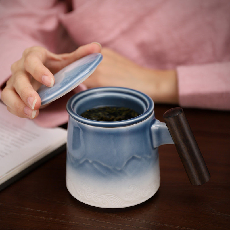 Pure silver ceramic cup office cup teacup household cup teacup teacup separation cup with tea leakage private customization