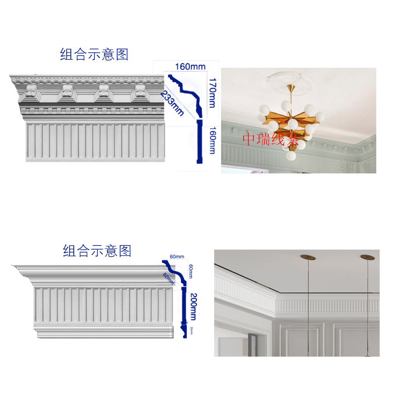 PU line top corner line 25 30CM vertical strip wave plate flat carved flat line ceiling corner line