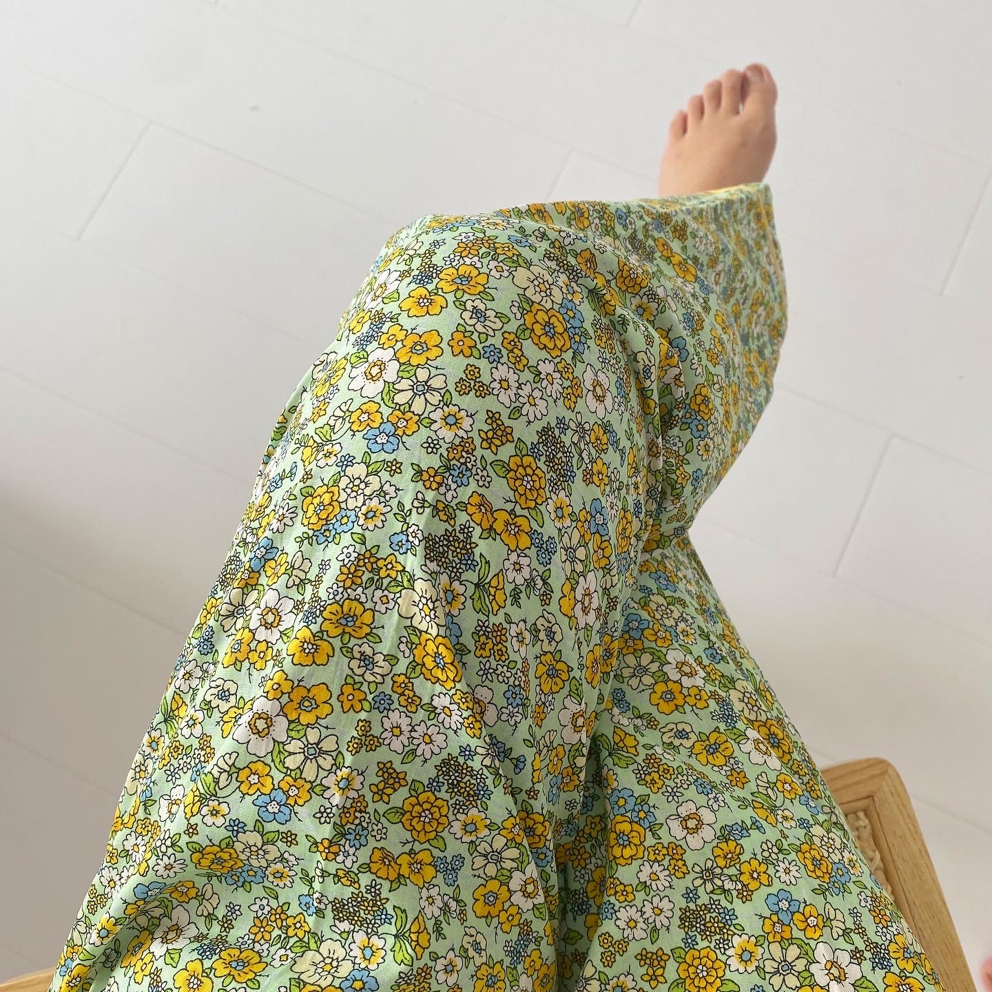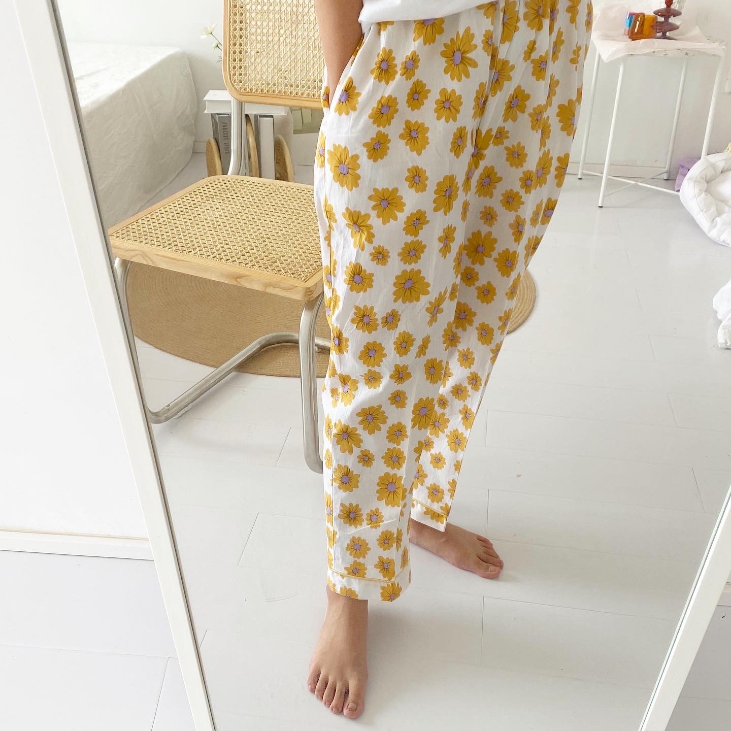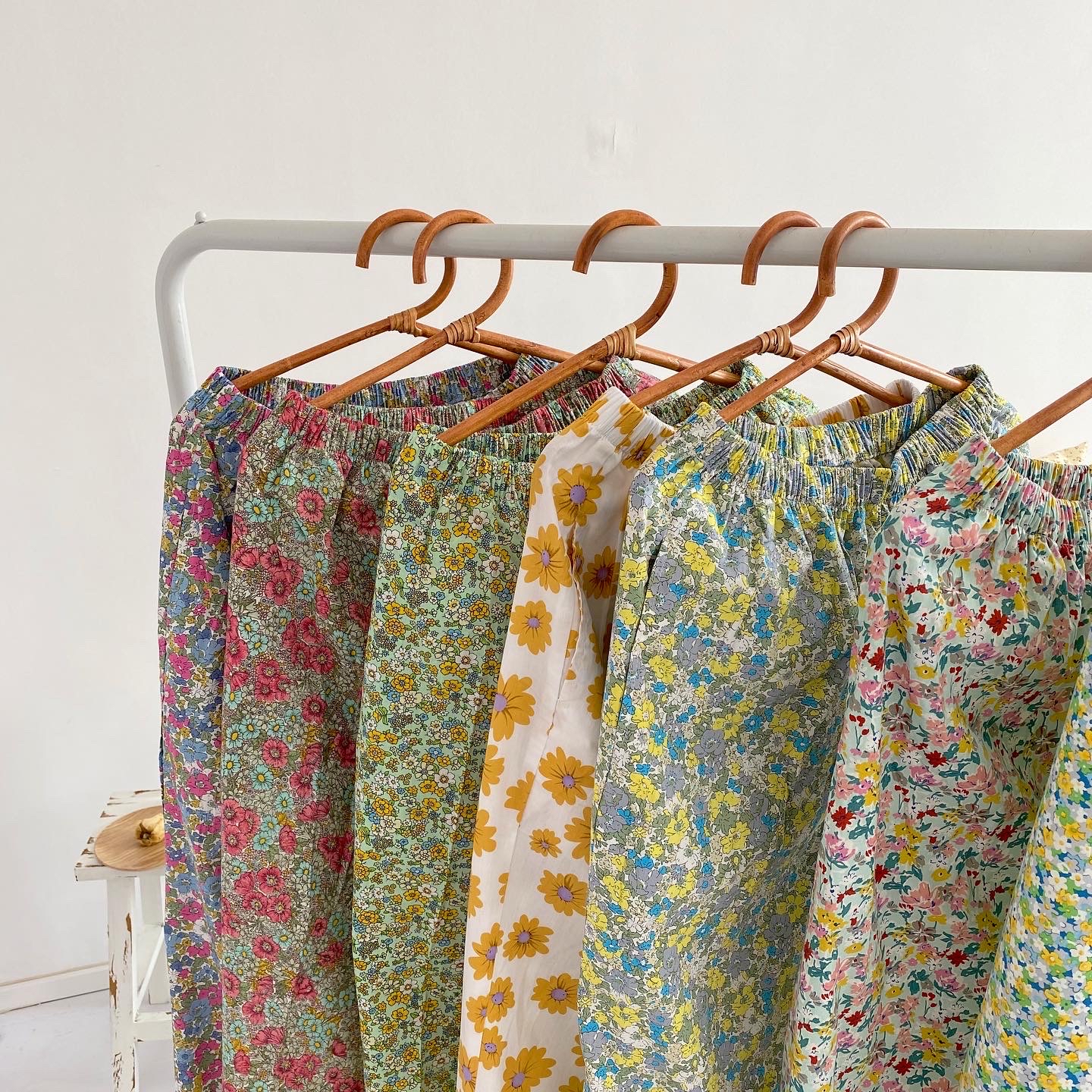 B blue green flower long pants A fresh yellow daisy long pants C bright eyes Pink Flower Long Pants D floral trousers D Water Ink Practices Flowers E red flowers with sea Blue Flower Long pants F light green base small yellow flower long pants
