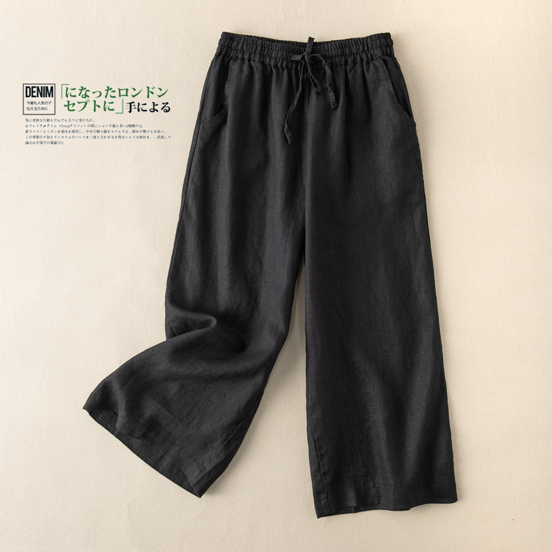 White cotton and linen cropped trousers women's 2022 summer wide-legged drop feeling slim linen loose high-waisted vertical straight-leg trousers