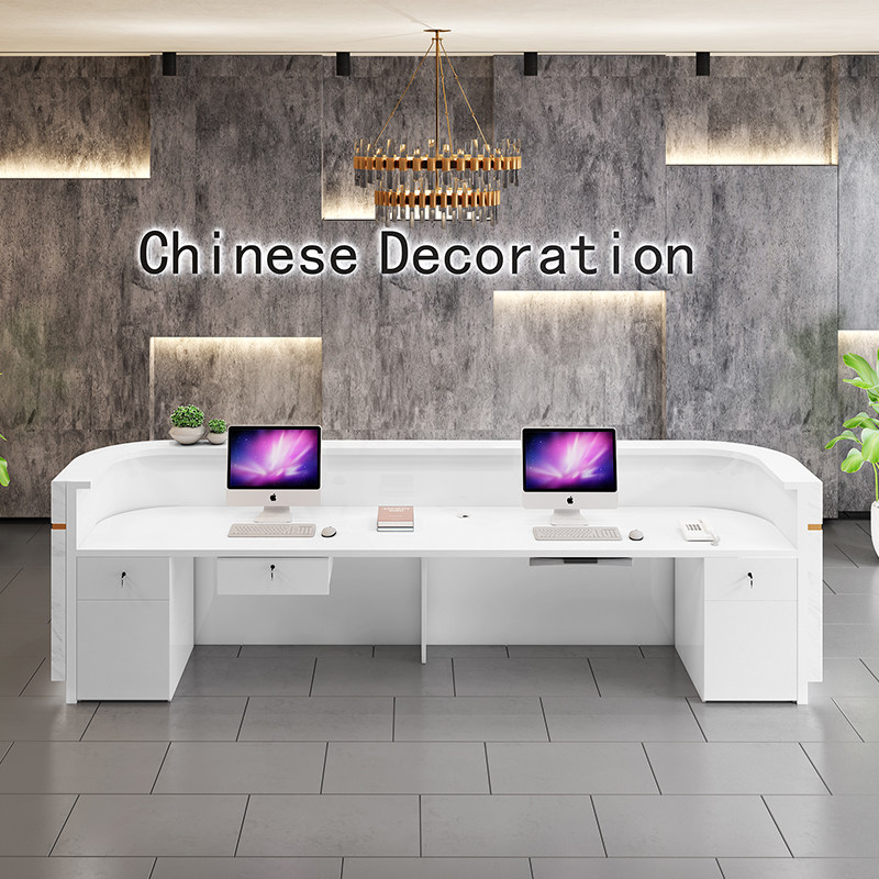 Lanling company front desk reception desk imitation marble paint cash register counter Curved desk Beauty salon bar custom