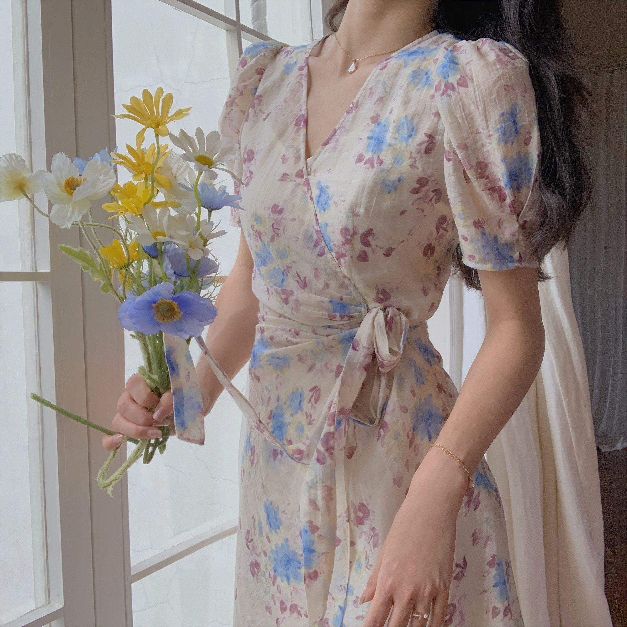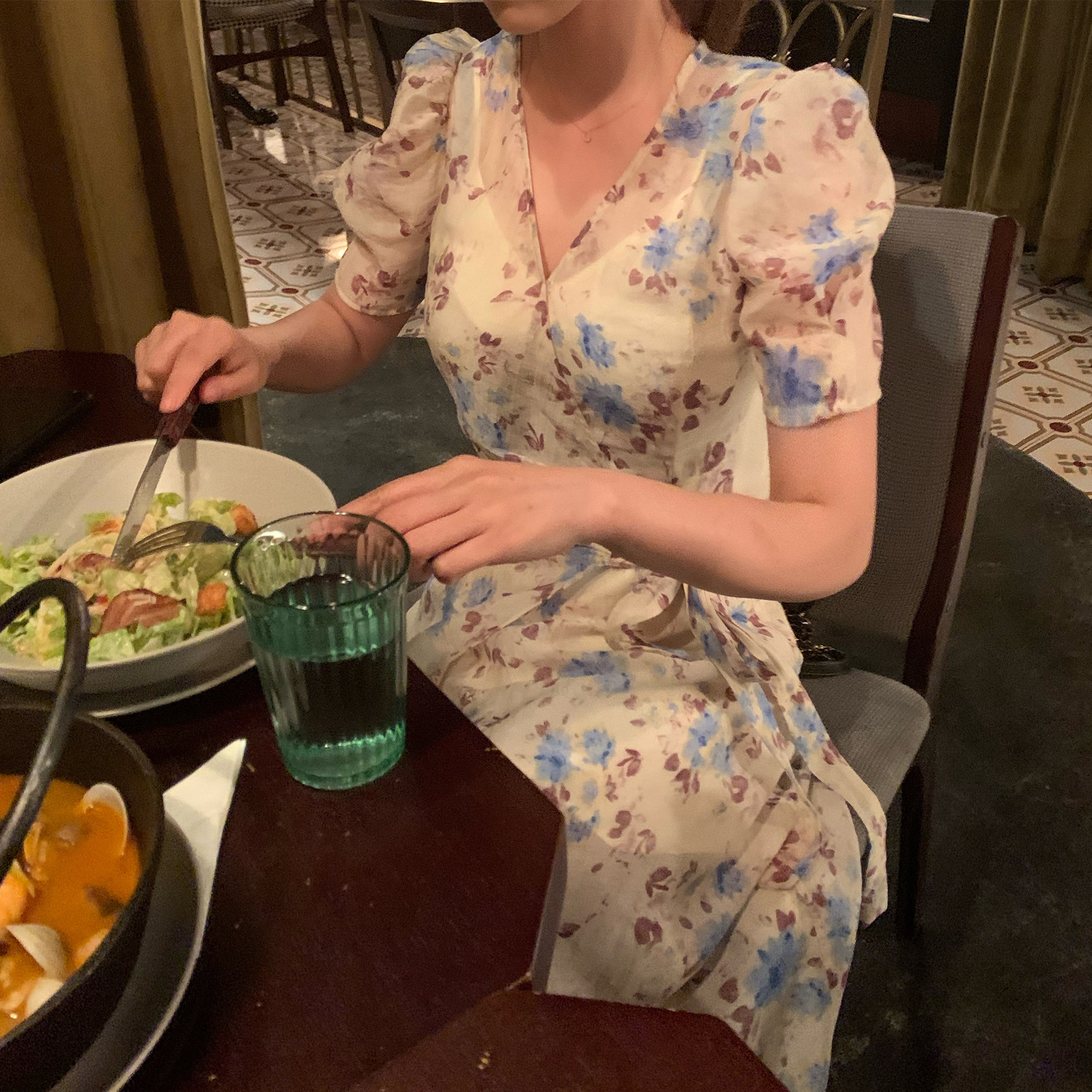 From a flower with a flower of the Tuber Tuber of the Heavenian Sky Silk Retro of the Flower Lace with the Florian Dress V Collar Wrap the Skirt Temperament