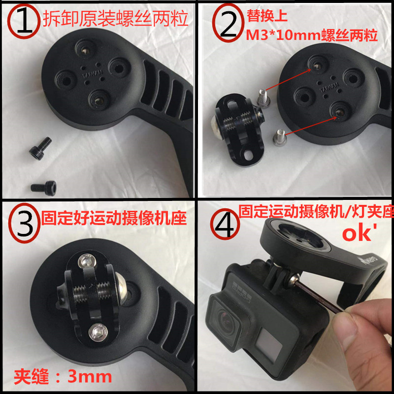 Aluminum alloy GOPRO seat GARMIN Jiaming 100 Sharp Walker Black Bird Flashlight Code Watch Rack Apply Camera Accessories