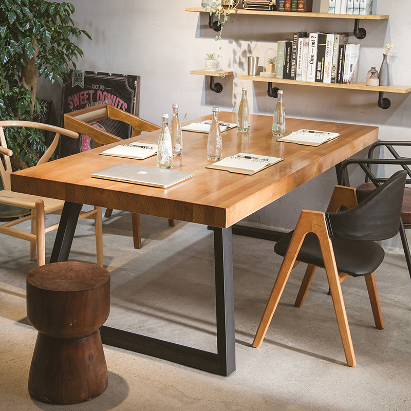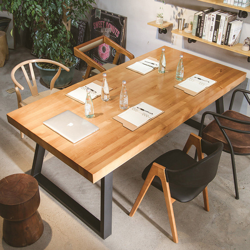 Simple modern solid wood office conference table Industrial style office negotiation table Large long table Computer desk