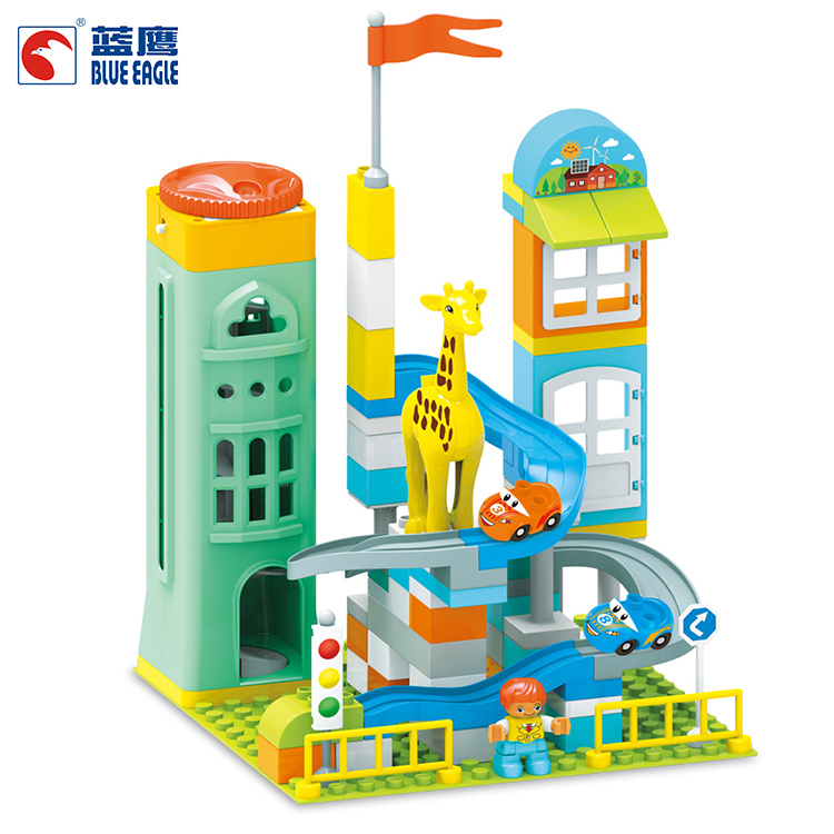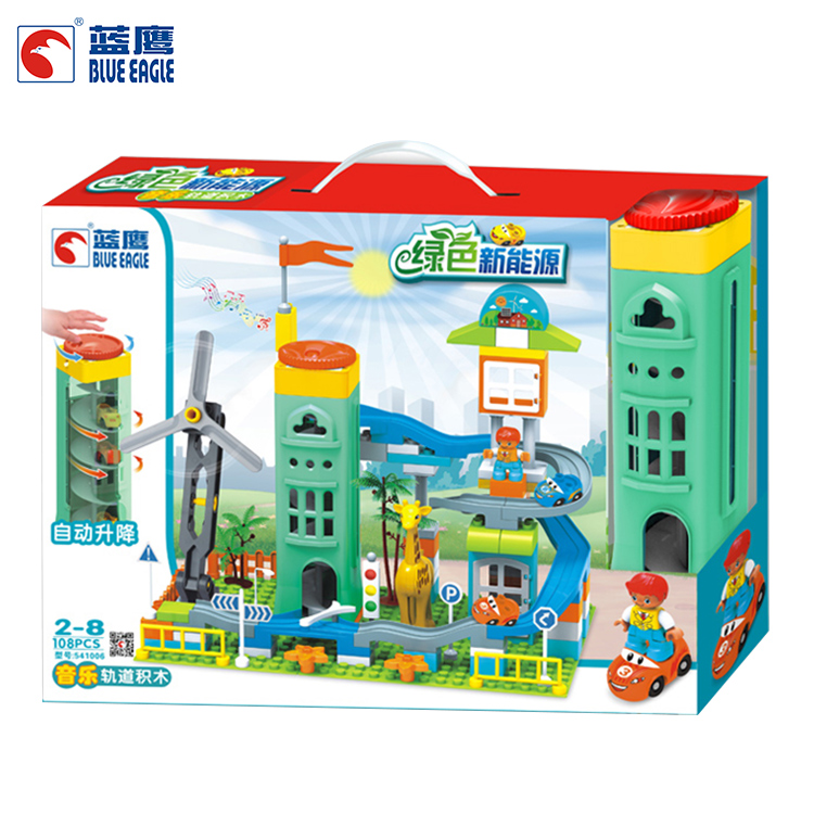Blue Eagle Electric Track Building Blocks Children Assembly Toys Puzzle Puzzle 2-3-6 Year Old Male Girl Large Grain Slide Block