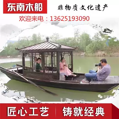 Single Pavilion small painting boat wooden boat electric sightseeing boat scenic spot catering antique wooden boat water hand-drawn electric front