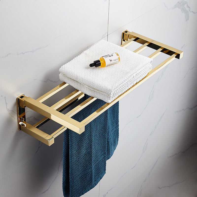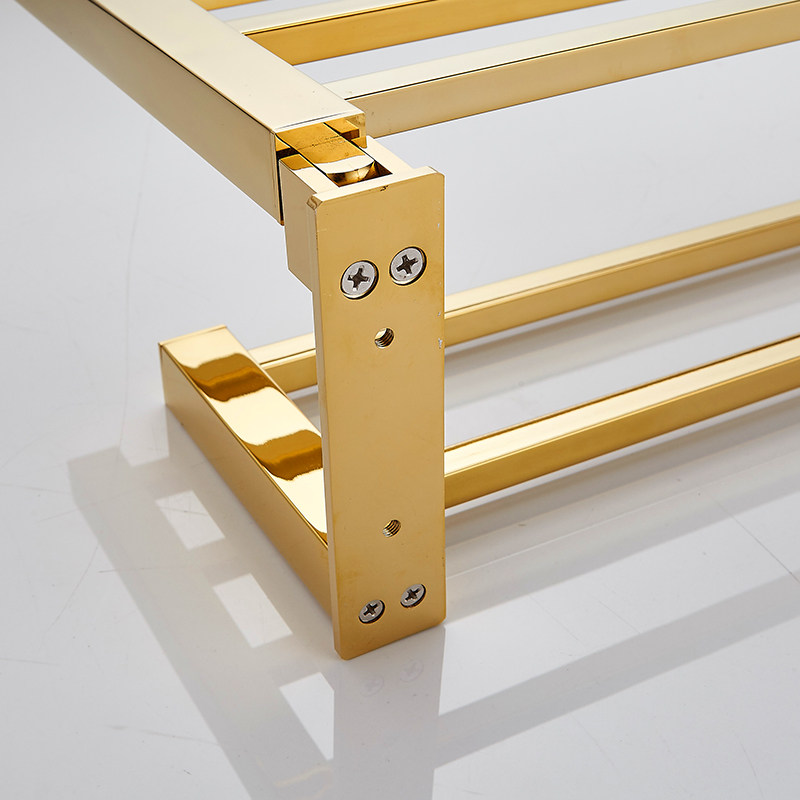 European-style all-copper square gold towel rack bathroom hardware pendant set device rack powder room thickened bath towel rack