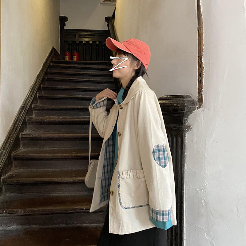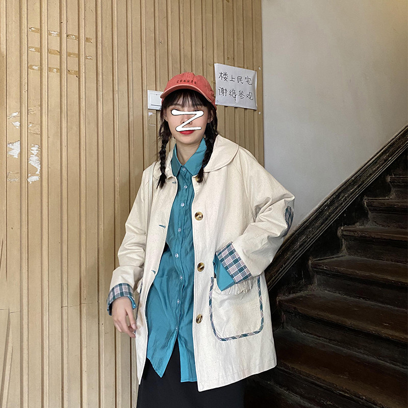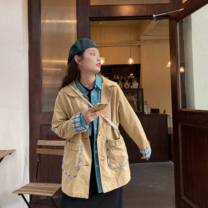 Clear Cabin Special Tooling Jacket Woman Mid Spring Autumn Plaid Retro Ins Han Edition Relaxed Student Wind Clothing