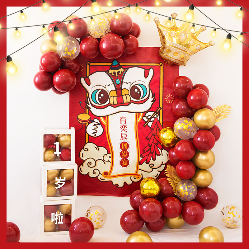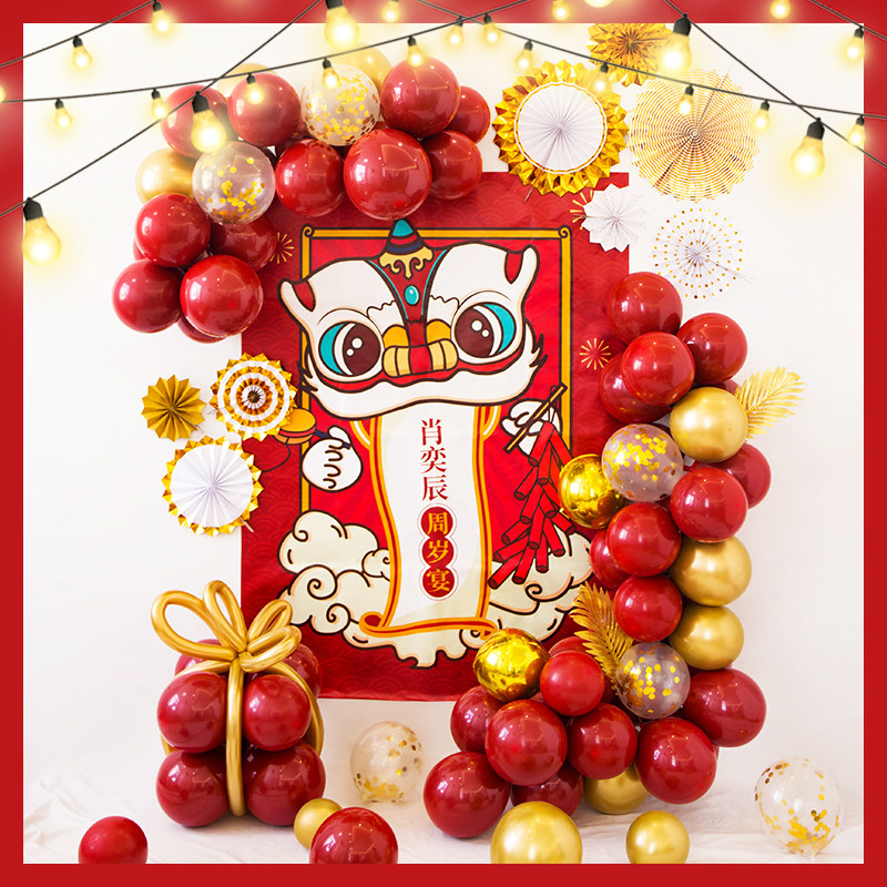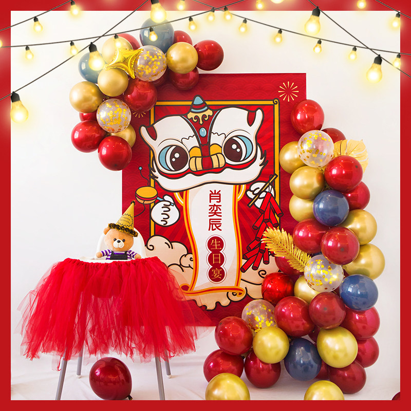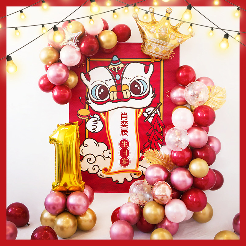 Chinese birthday decoration balloon baby banquet One-year-old children catch Zhou ceremony scene layout boy web celebrity background wall