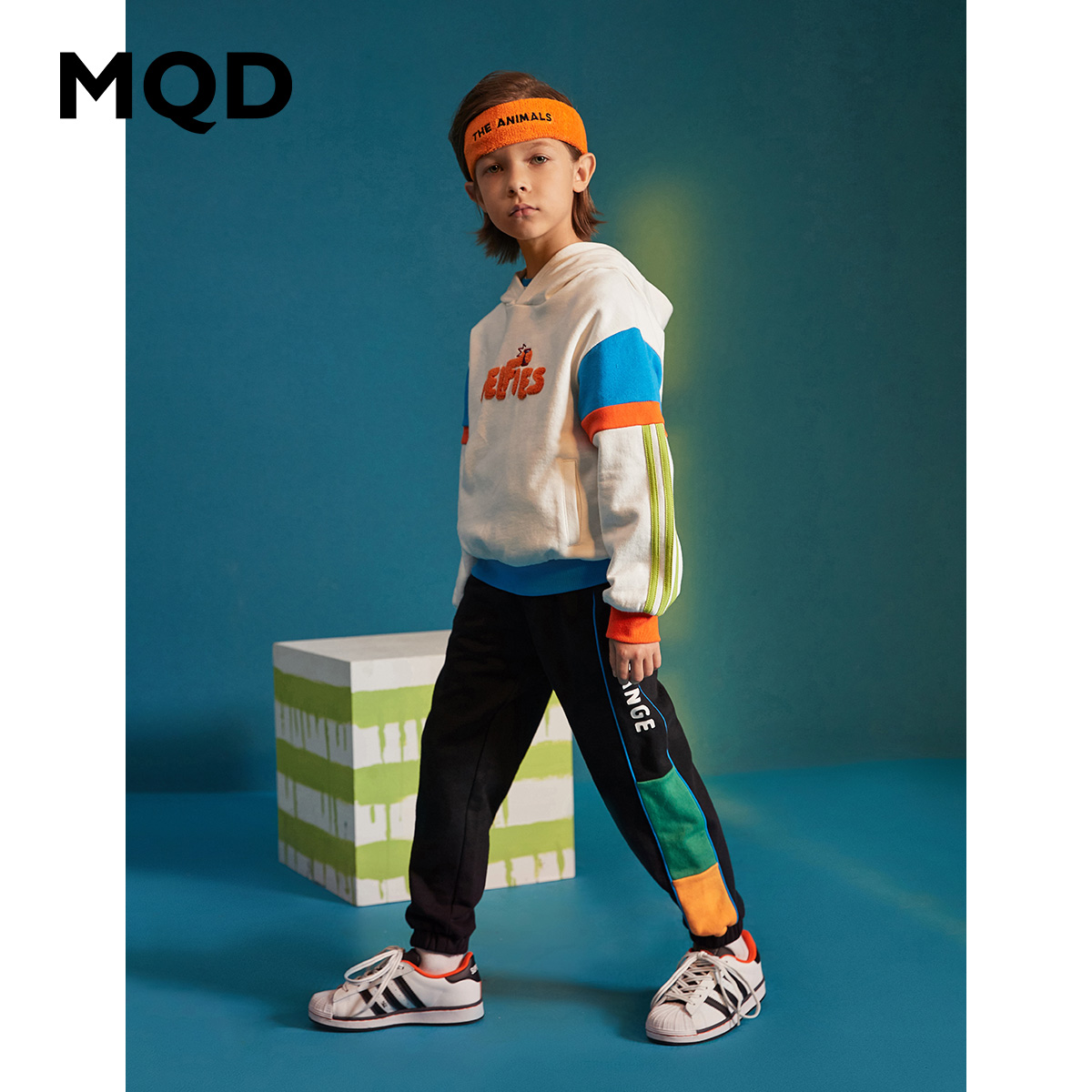 MQD children's clothing boys' sports knitted pants plus velvet thickening 2022 autumn and winter new middle and big children's children's casual pants