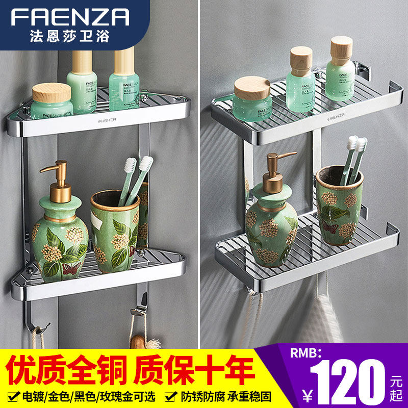 Faenza Solid All Copper Tripod Toilet Corner Rack Bathroom Shelf Wall Hanging Toilet Storage Rack Net Basket
