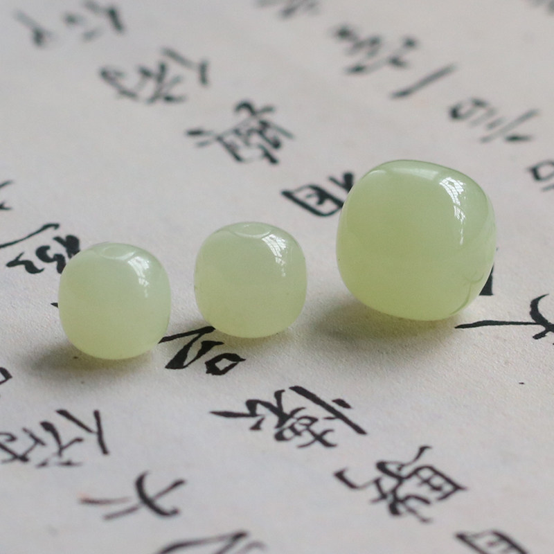Natural Hetian jade loose beads yellow mouth old-fashioned beads lemon yellow single jade barrel beads diy bracelet with beads