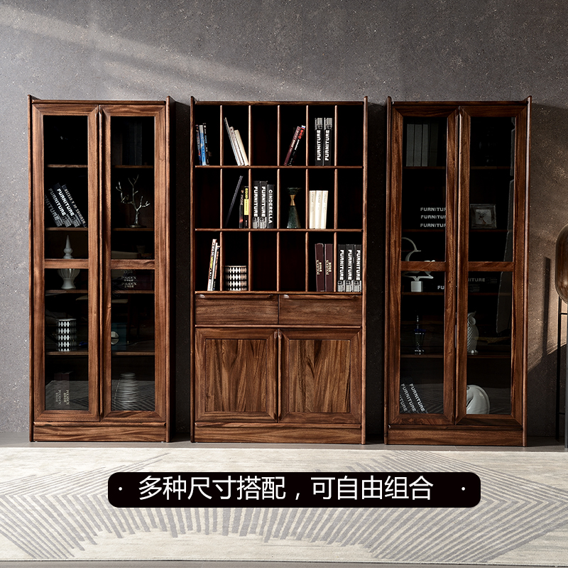 Black walnut solid wood bookcase desk and chair combination modern minimalist study furniture wood wax oil storage cabinet book overall cabinet