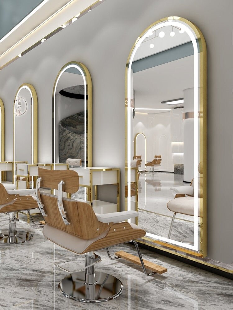 Li Kun touch hair mirror retro aluminum alloy style hair salon mirror table chair set Li Kun shop black gold