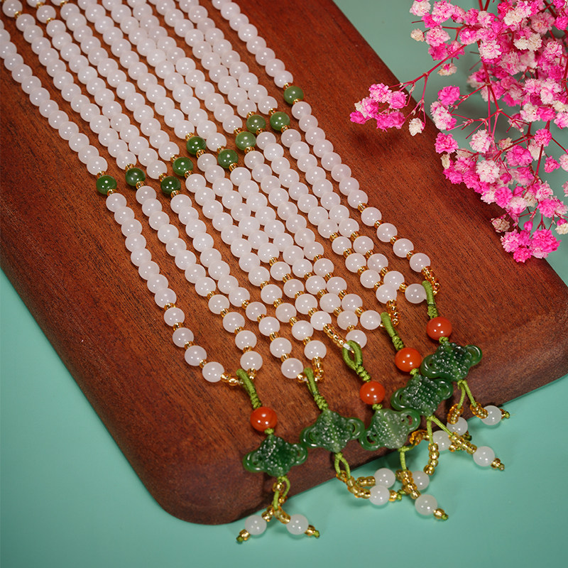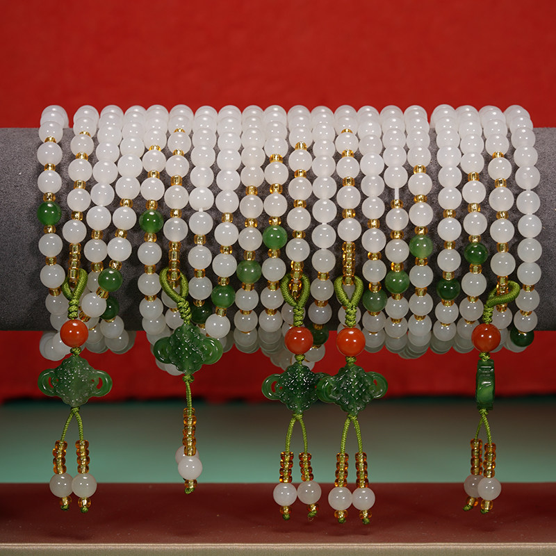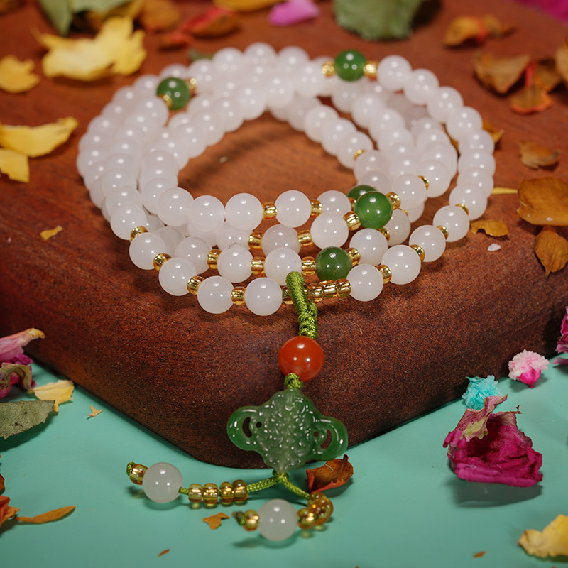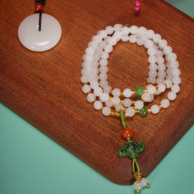 Shuanggao Hetian jade necklace mutton white jade necklace 6mm women 108 ball chain Xinjiang beads sweater refining