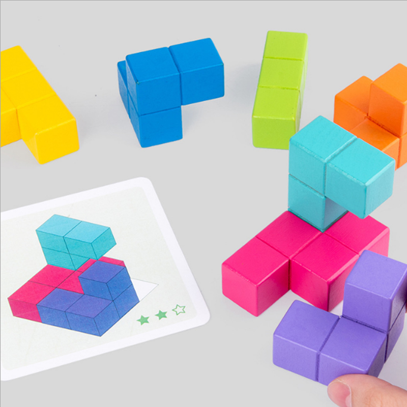 Child Wood Magic Square SomaTetris Building Blocks Space Imaginative Mind Puzzle Toys 30 Questions Advanced to Challenge-Taobao