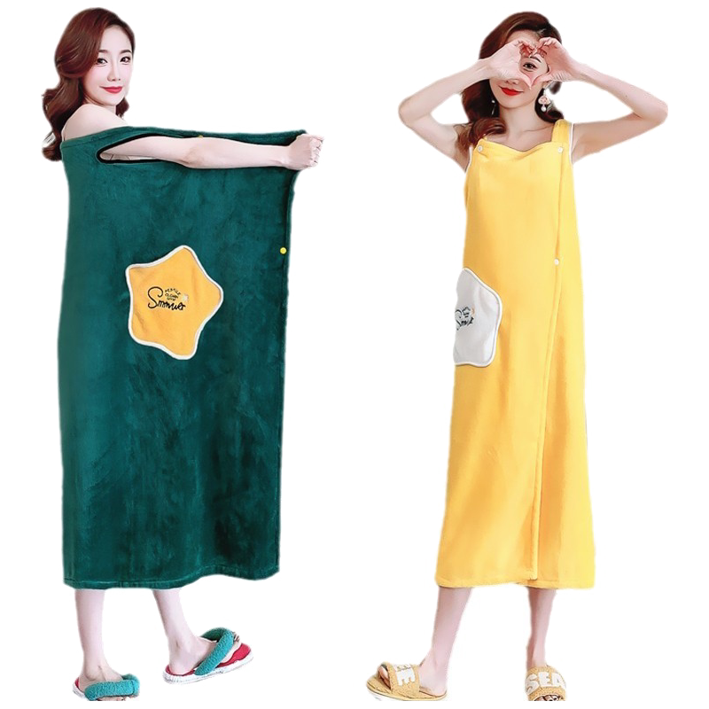 Bath towel women can wear wrapped bath skirt beauty salon bathrobe sweat steaming clothes than pure cotton water absorption increase strap coral fleece cartoon