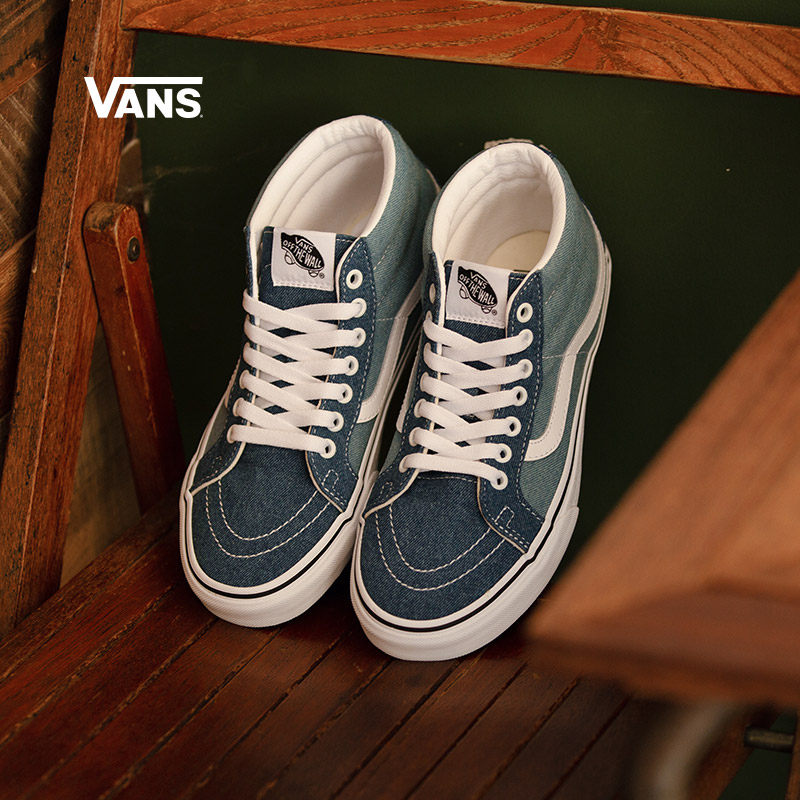 Vans Van Sans Official SK8-Mid Water Bing Moon Blue American College Wind Men's Shoe Shoes Canvas Shoes