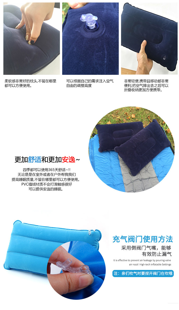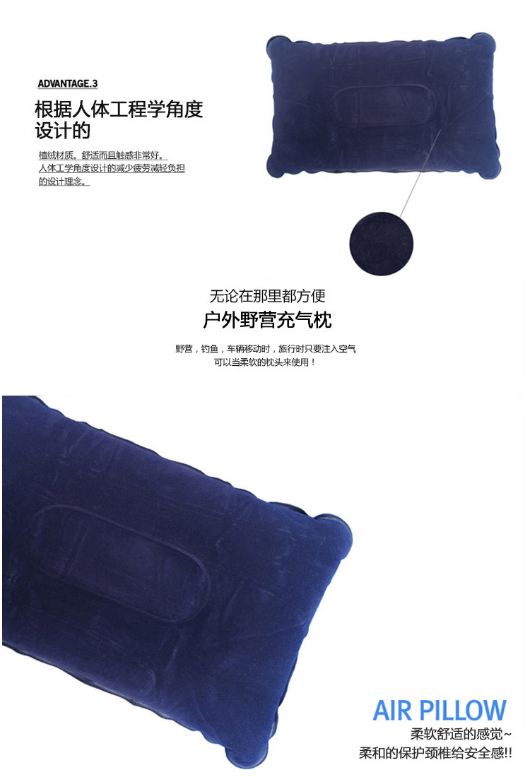 Outdoor Inflatable Pillow Large Thickened Flocking Square Camping Sleeping Bag Pillow Lunch Break Cushion Folding Travel Pillow Spot