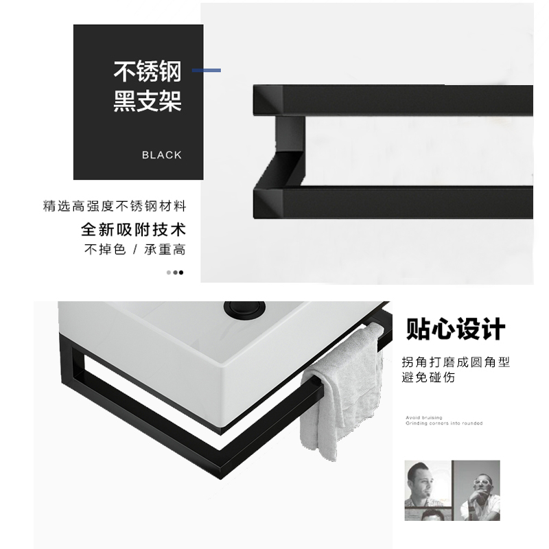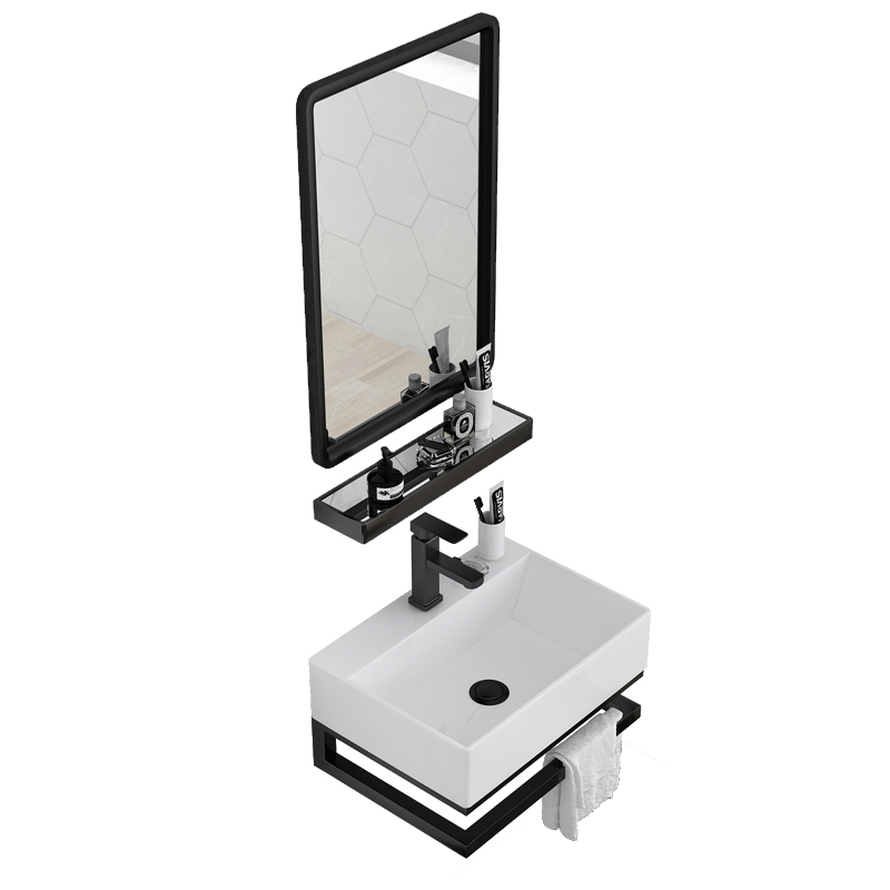 (50×36cm) Bracket basin + launch + black faucet + square mirror + shelf