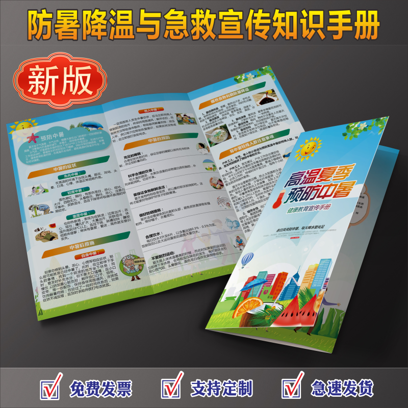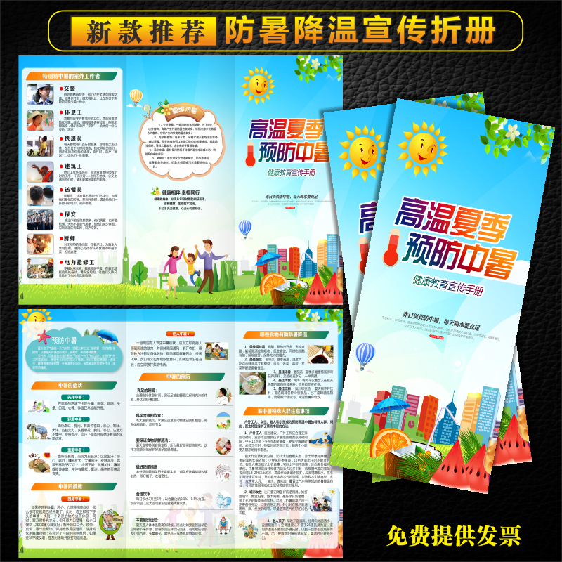 Heatstroke Prevention Cooling Knowledge Propaganda Single Color Page Prevention Heatstroke Publicity Brochure Summer Heatstroke Prevention Color Page Summer High Heat Heatstroke Publicity Single Publicity Brochure Prevention Heatstroke Three-Fold Page Heatstroke Prevention Cooling Poster