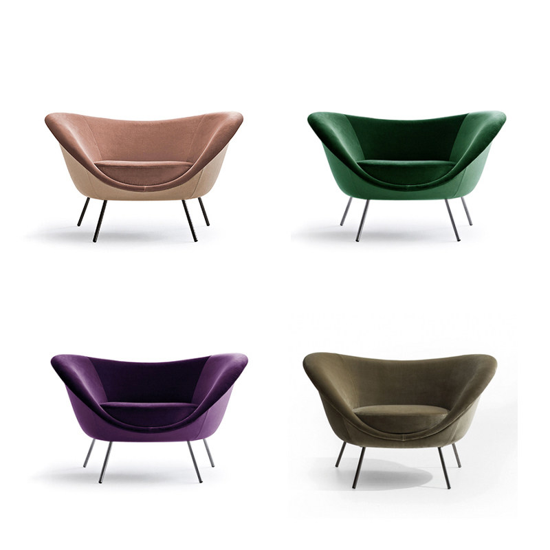 Nordic new fabric designer furniture Yuanbao sofa chair living room study lazy metal foot shell leisure chair