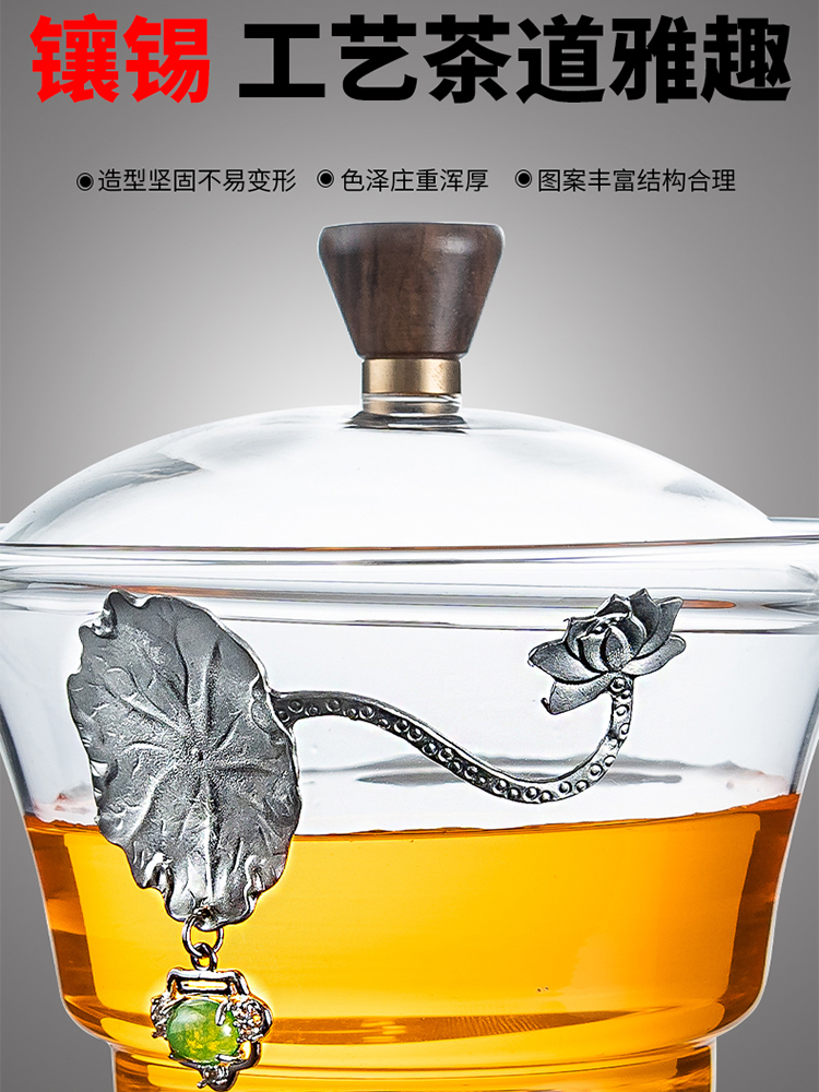 Glass (Inviting the Moon) Automatic Tea Set—Gold Hand Cup Alloy Tea Ceremony