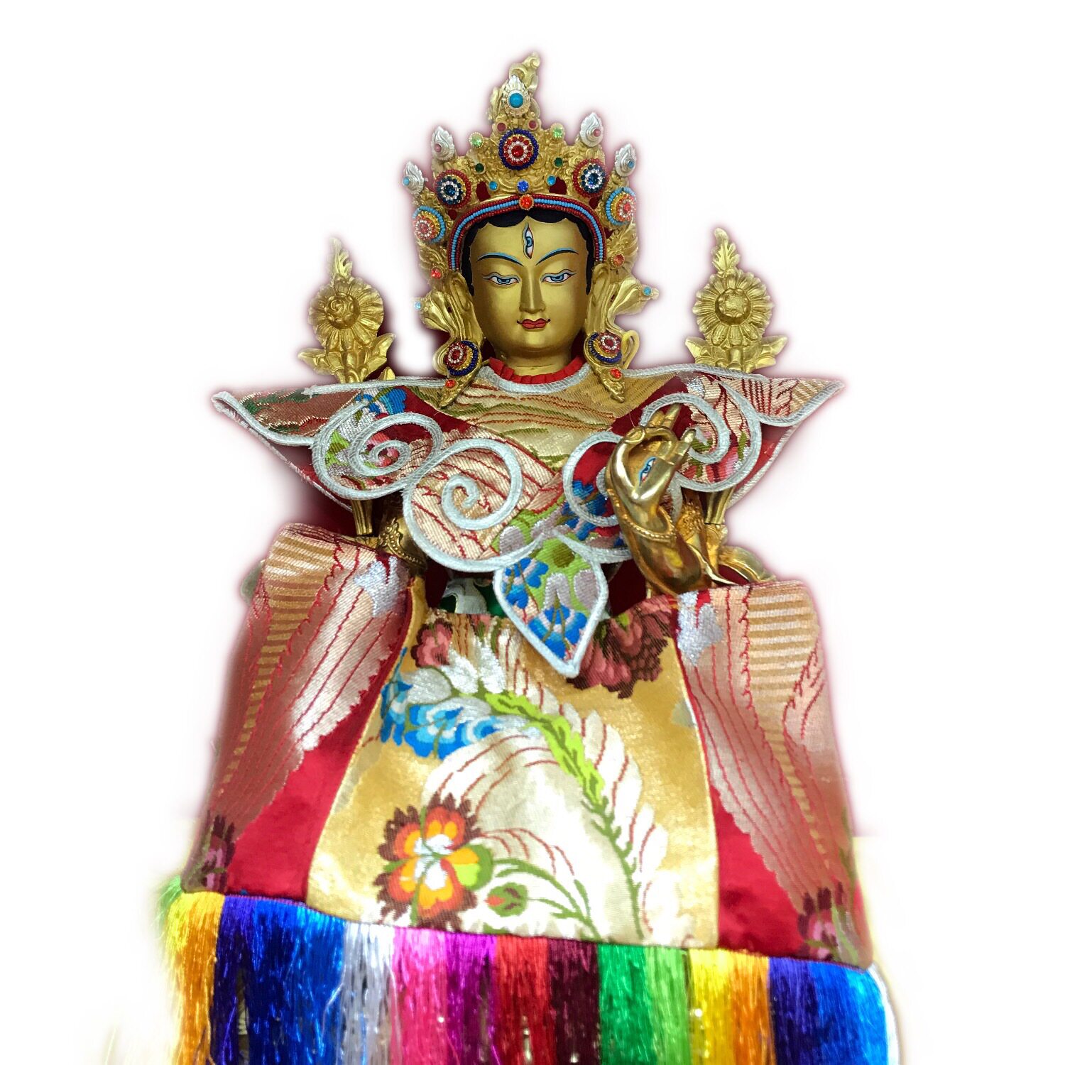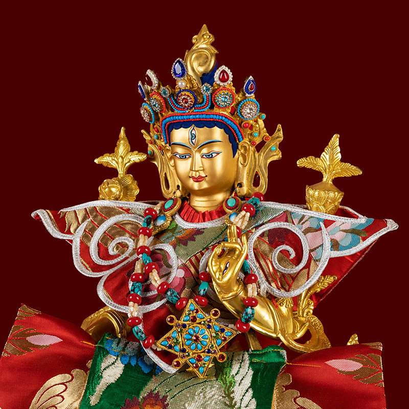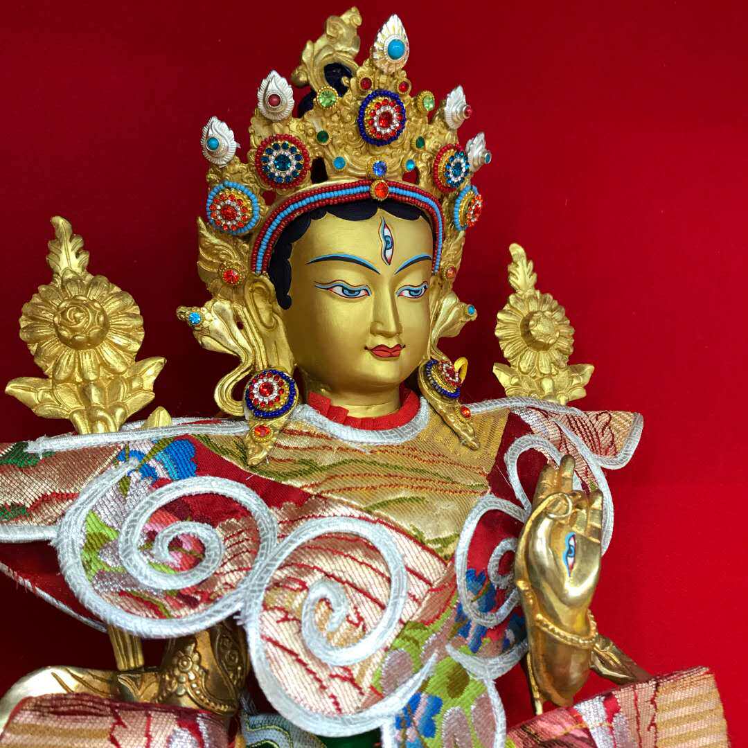 Tibetan-transmitted dense white-degree mother pure brass is dedicated to Buddha's Buddhist parlor living room home gift Buddha swing piece matching gold silk Buddha clothes