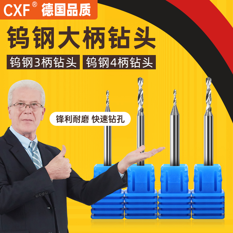 Tungsten steel large handle drill hole alloy drill 3 handle 4 - pin punch ultra - hard drill drill 0 4 - 4