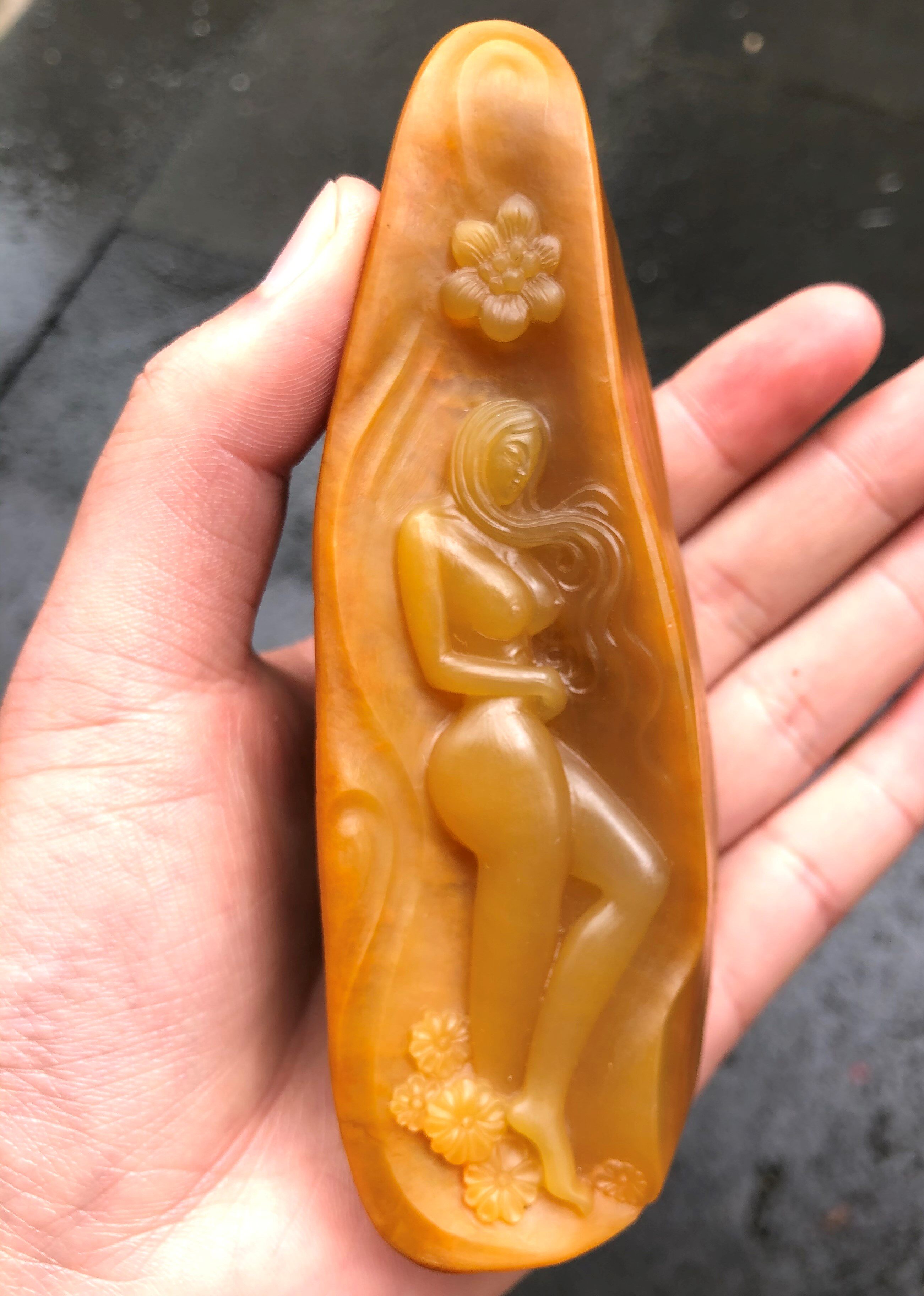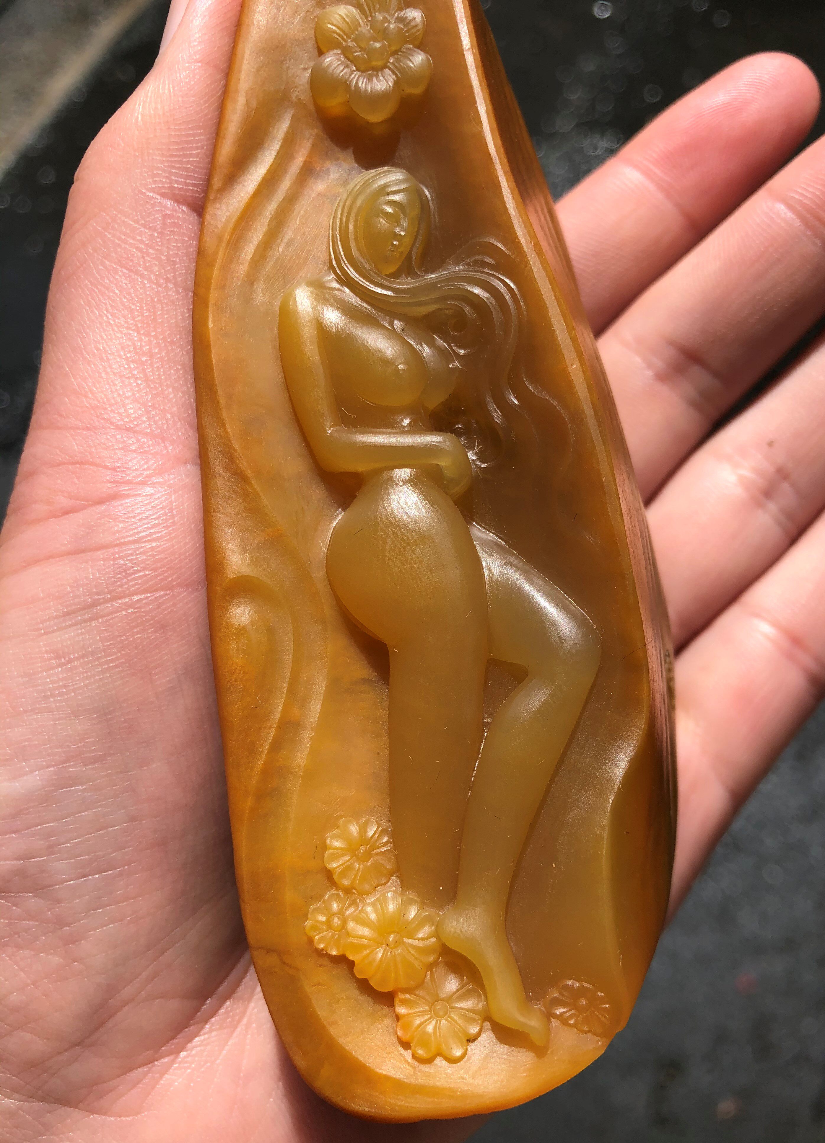 Yunnan Longling Huanglong Jade seed material Zheng Xiong master carved naked girl (encounter Noble) hand pieces