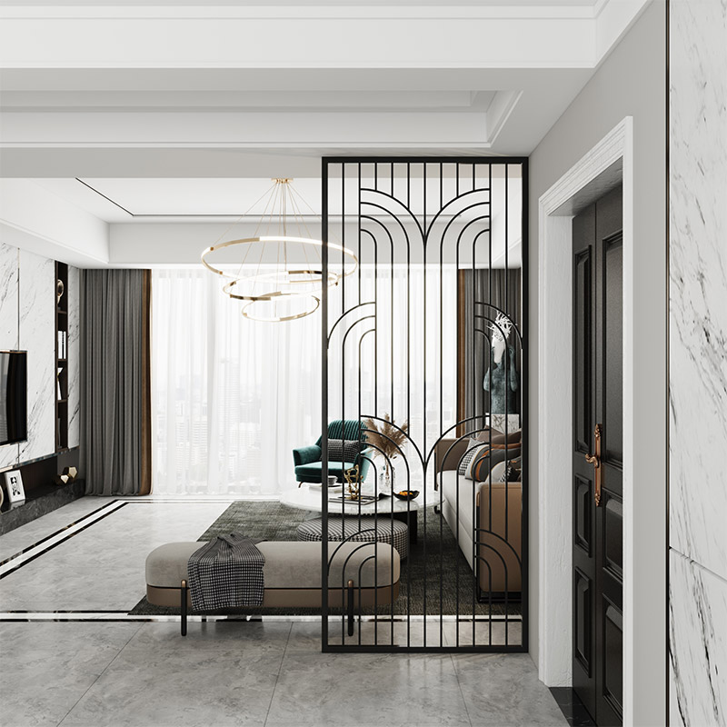 Nordic stainless steel light luxury screen partition room decorated modern minimal metal hollow entry door blocking wall
