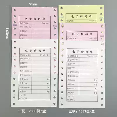 1 box of two-linked electronic scale code list 2000 copies per box 1 box of three-linked electronic scale code list 1333 copies per book 1 box of two-linked weighing list 2000 copies per box 1 box