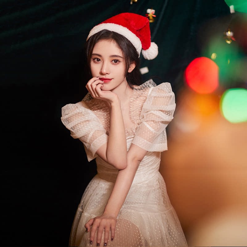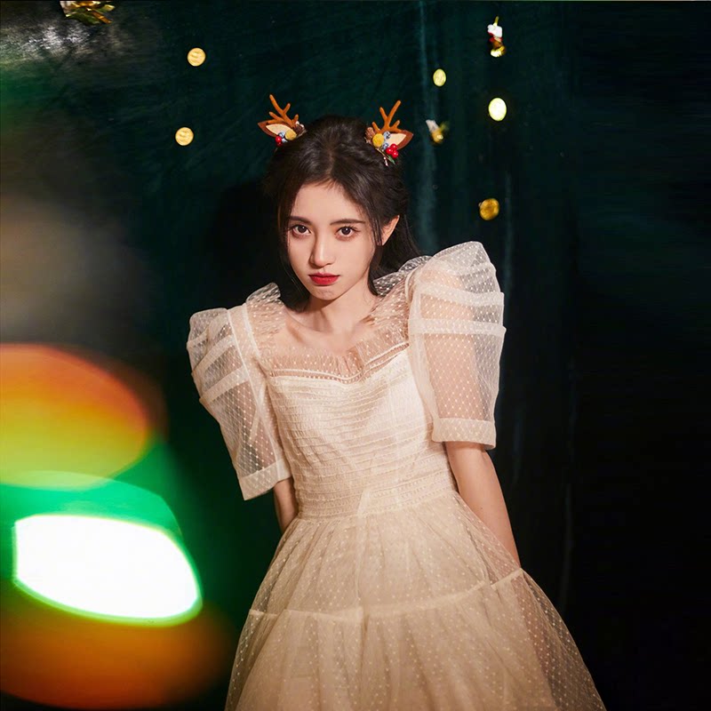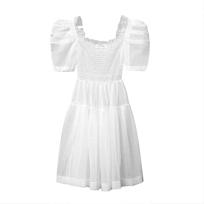South Korean stars with the same bubble sleeves Ocean dress 2022 New summer-reduction age net yarn Gentle Fairy Wind Princess Dress