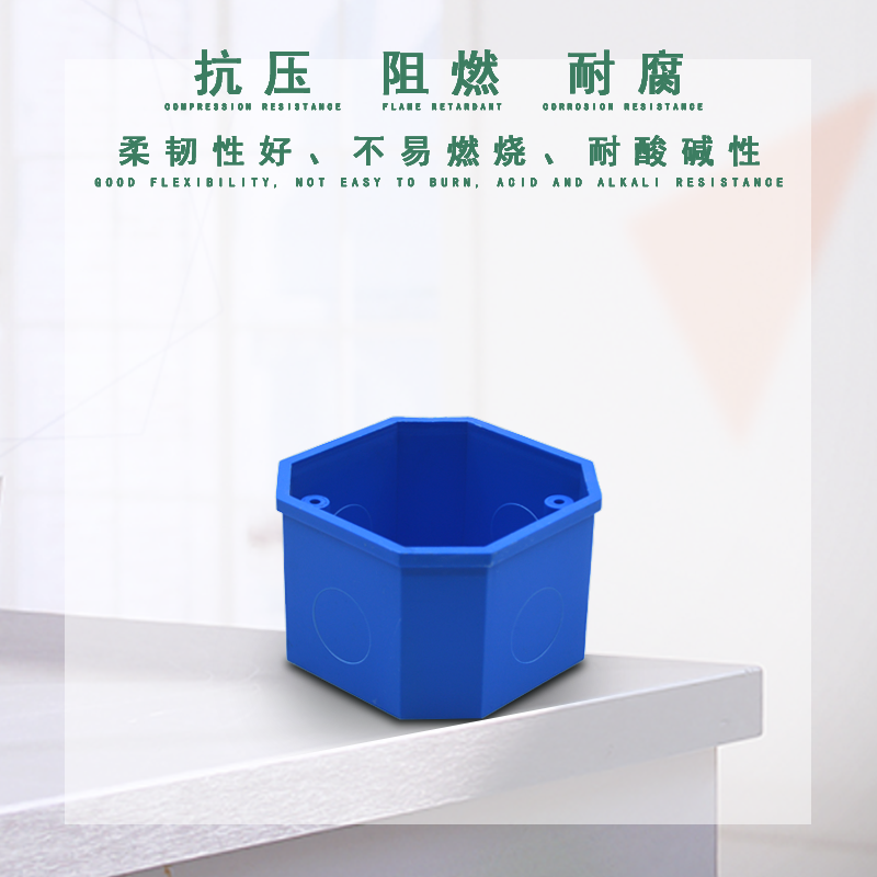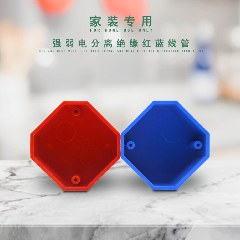 Zhongcai PVCU wire tube accessories octagonal box lamp holder box branch wire box top box red and blue flame retardant threading electrician casing
