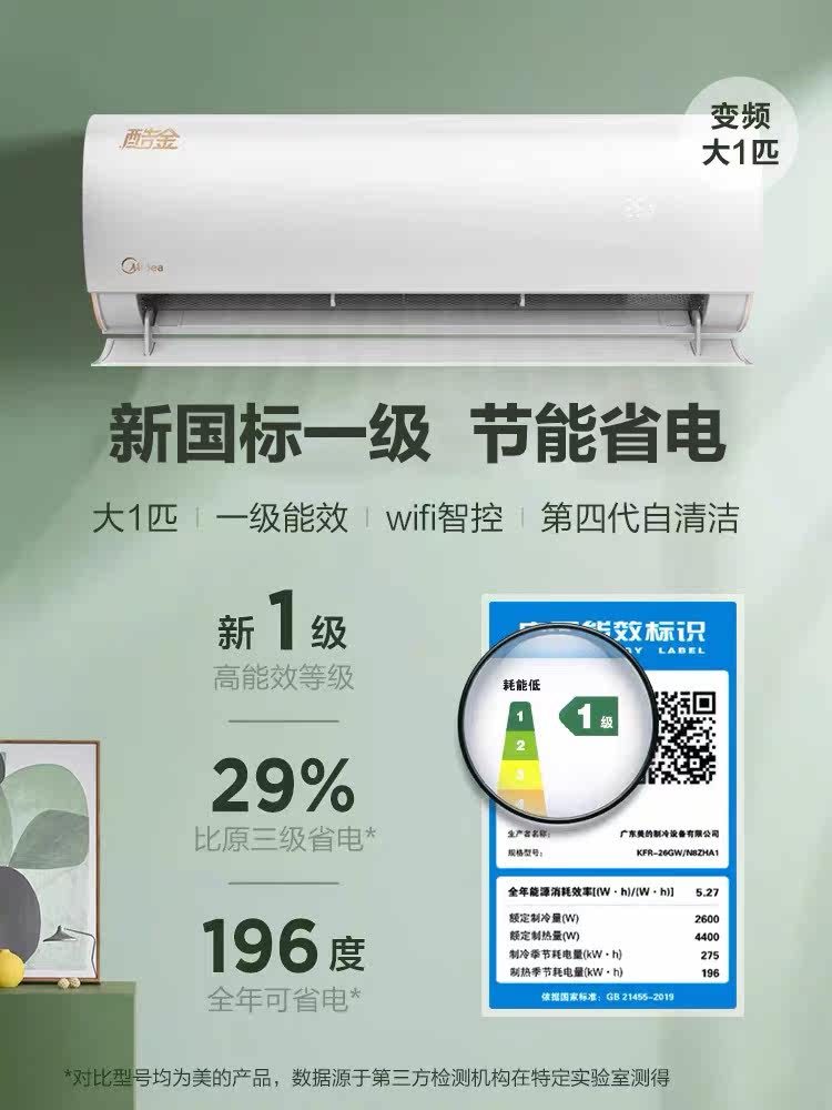 Midea's official cool gold Big 1 horse new energy efficiency air conditioner inverter class one hang up fast cooling warm small intelligent
