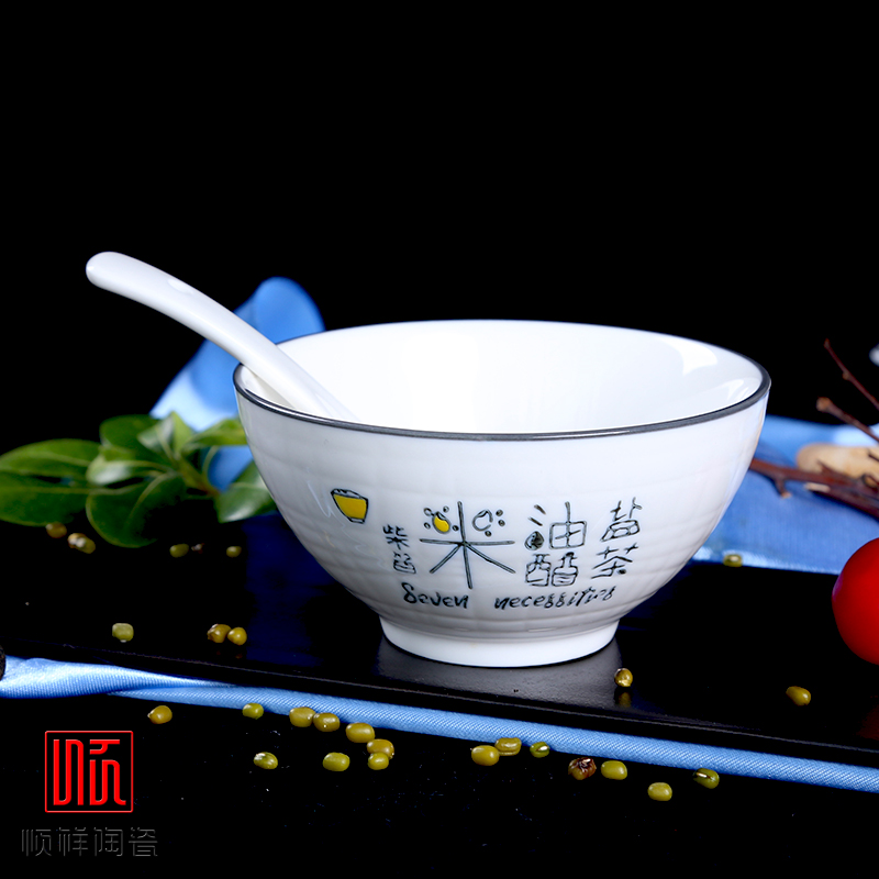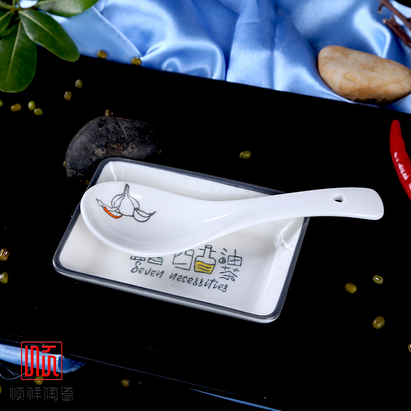 5 5 inch small spoons 6 Shunxiang ceramic firewood rice oil salt household spoon drinking spoon long handle porcelain tableware