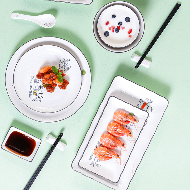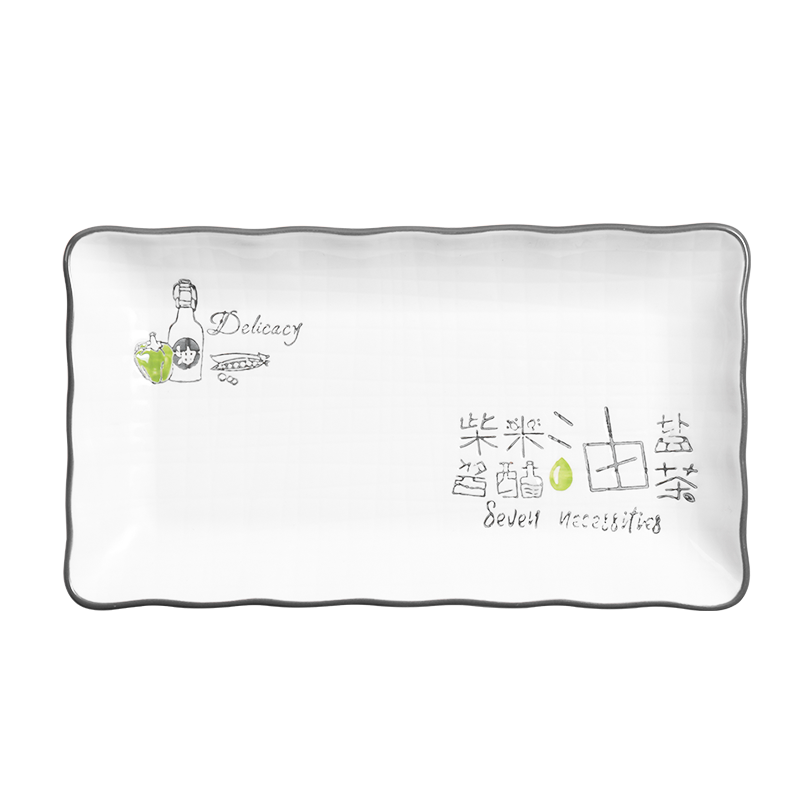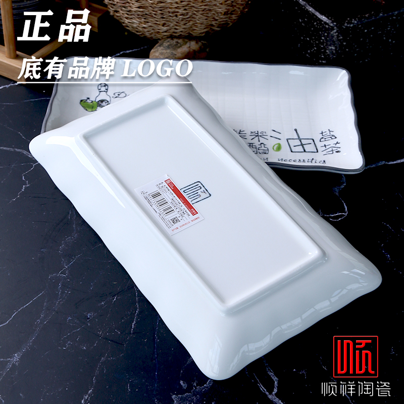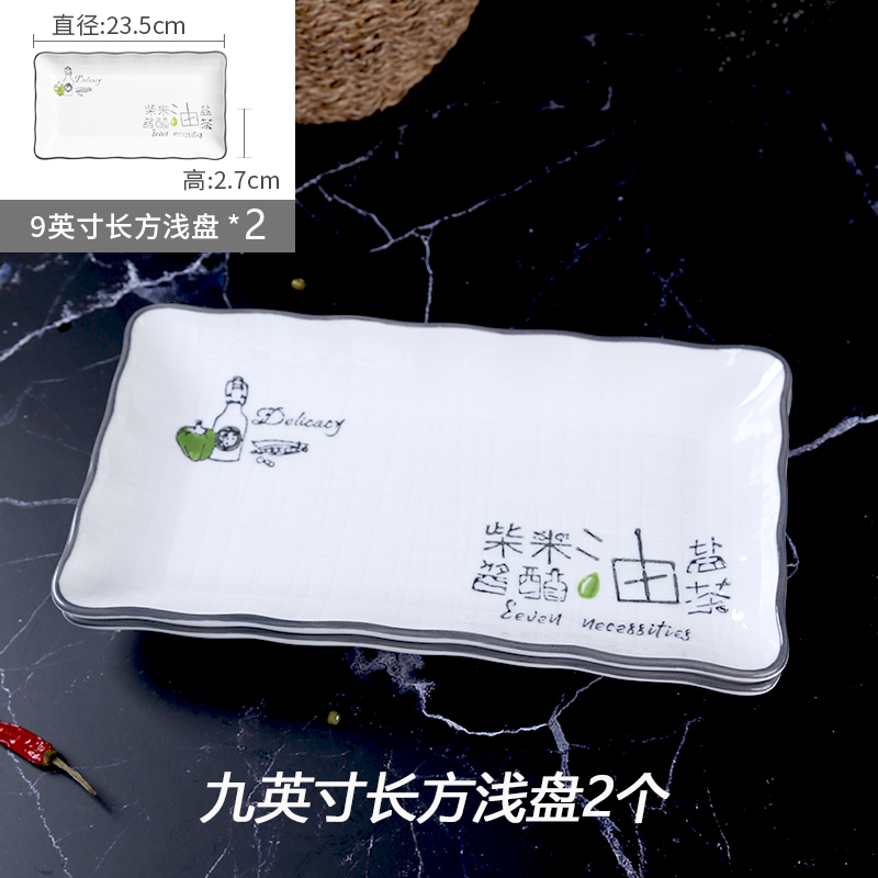 9-inch rectangular small fish plate sushi plate 2 Shunxiang ceramic wood rice oil and salt household tableware underglaze color microwave oven