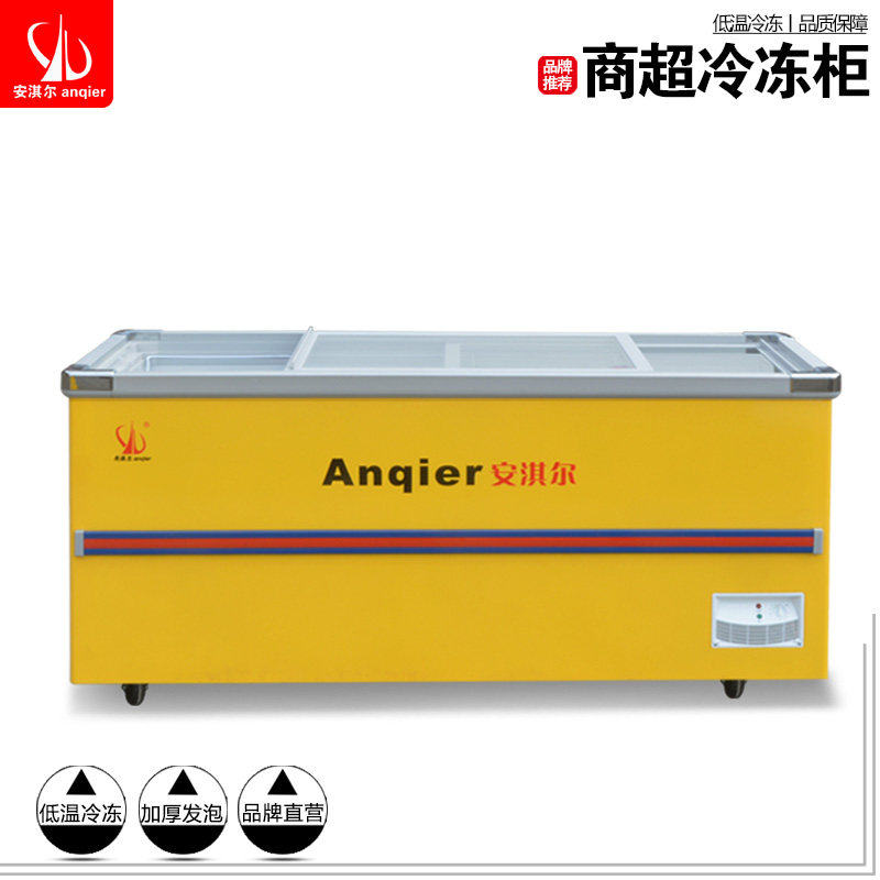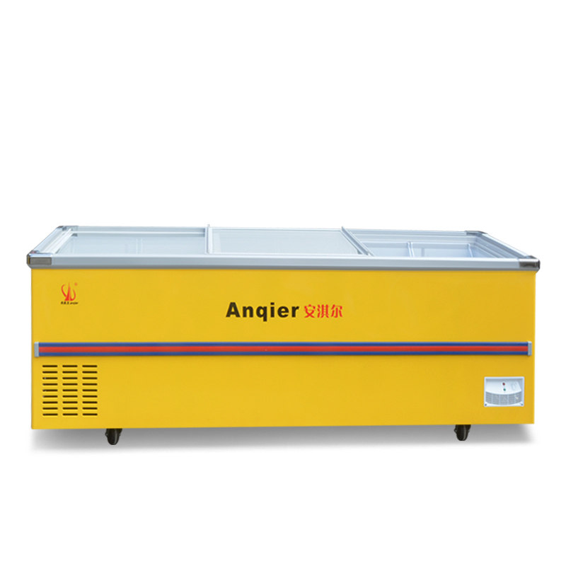 Amber Cream Island Cabinet Commercial Supermarket Display Case Horizontal Ice Freezer Freezer Freezer Freezer Glass Door Frozen Preservation Cabinet