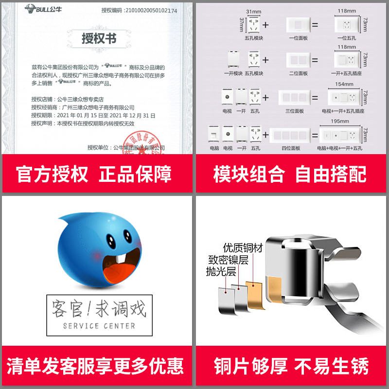 Bull switch socket 118 type 345678 open double control duplex champagne gold home large panel dark installation
