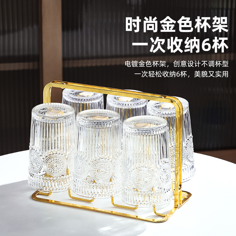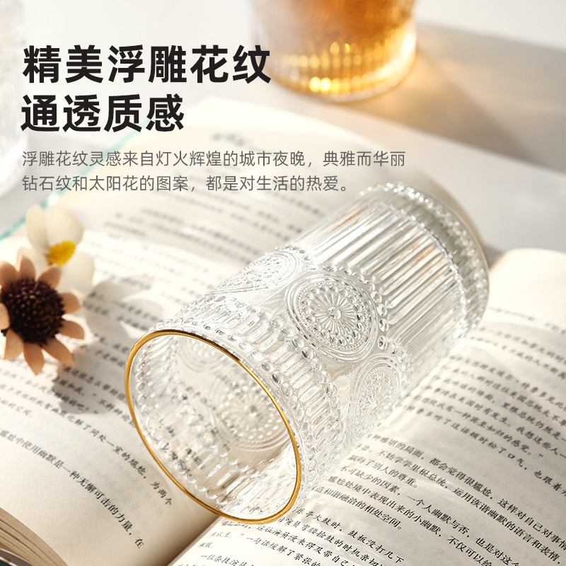 Solar Flower Glass Cup Suit High Face Value Family with Waiting Living Room Retro Relief Drink Coffee Cup-Taobao