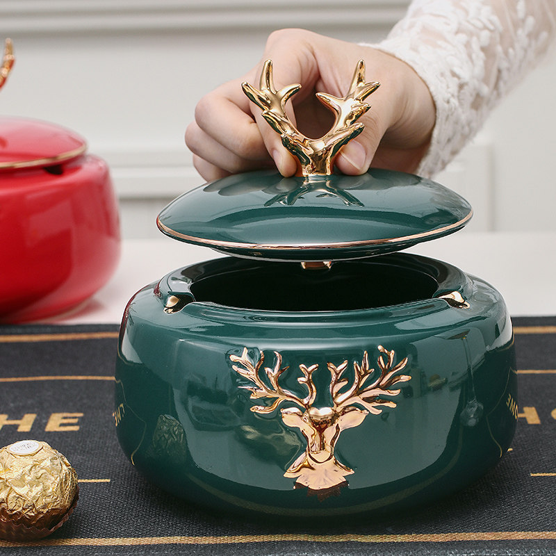 Personalized decoration office with lid windproof ceramic ashtray light luxury ceramic ashtray home living room coffee table ornaments