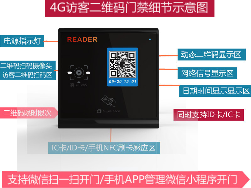 4G QR code visitors cloud access control system WeChat swipe mobile phone app remote open door IC card WIFI Bluetooth