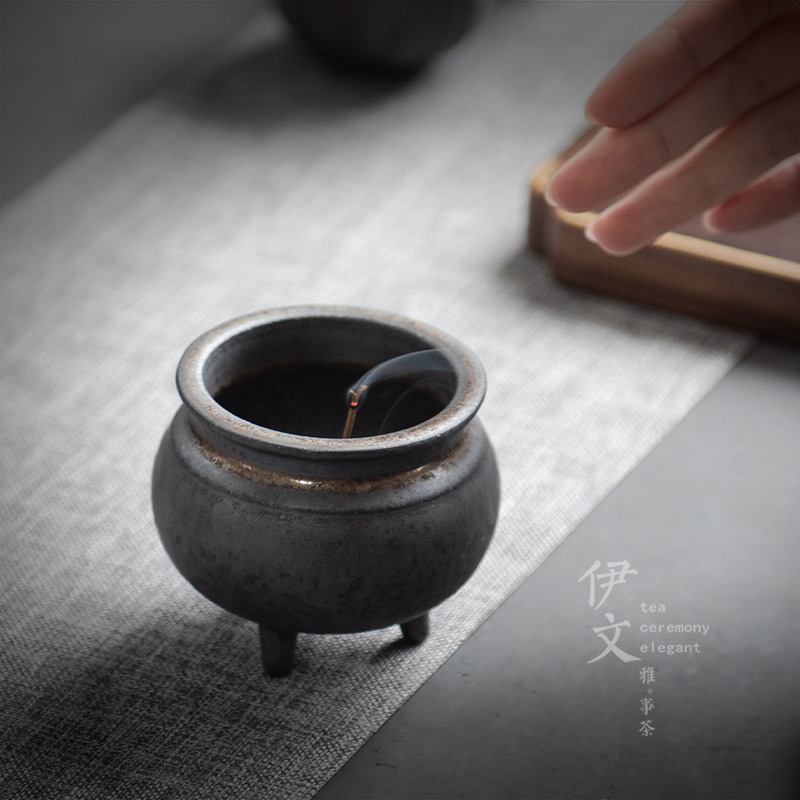 Evan ceramics Iron glazed incense burner Household incense inserter agarwood shelving Xiaoding ceramic ornament Kung Fu tea set accessories