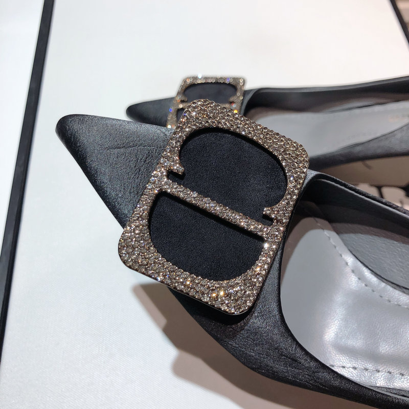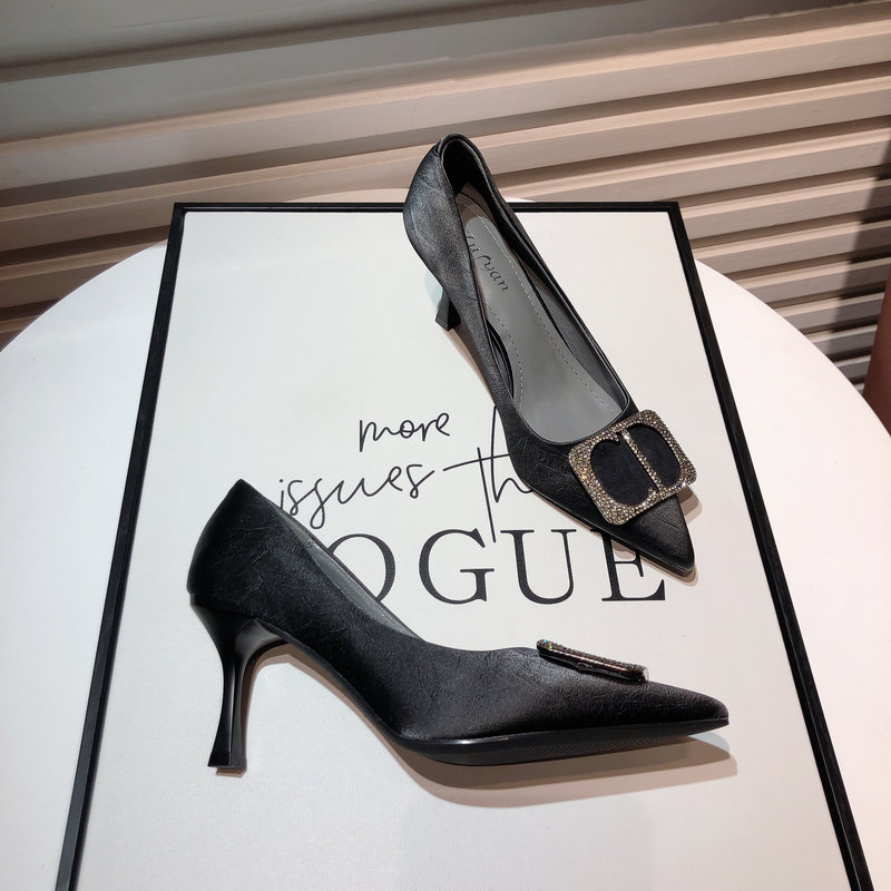 European and American temperament water drill cup heel shoes black spring new sexy French tip fine and dress bill